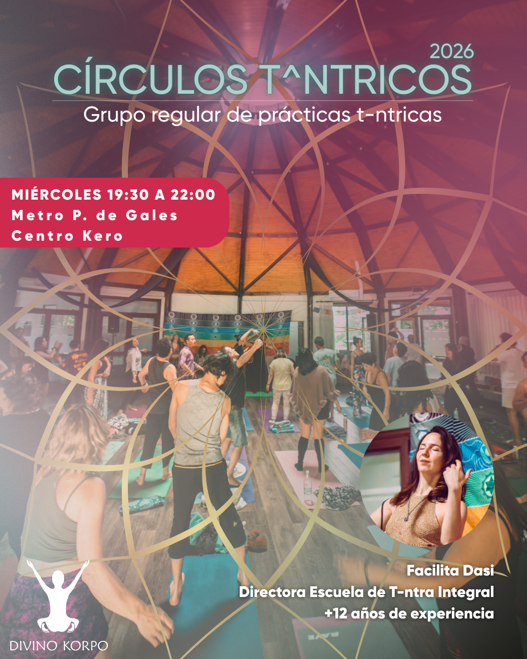 El Círculo Tántrico es un espacio semanal de encuentro y exploración, donde a través de distintas prácticas tántricas buscamos profundizar en la conexión con nosotros mismos y con otros desde la conciencia y el respeto.